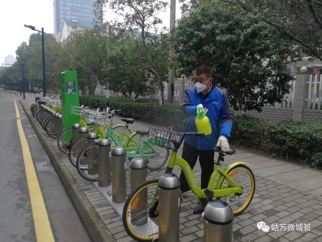 運營單位采購消毒防護用品、組織工作人員對蘇州姑蘇區所有公共自行車站點使用有效氯為1000mg/L~2000mg/L的含氯消毒溶劑進行不間斷消殺,重點是站點控制柜(整體)、車樁讀卡區、自行車車把、手剎、車座、車筐等市民騎行時易接觸部位。