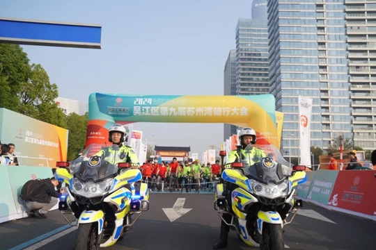 天朗氣清,湖波蕩漾,在全國場地自行車錦標(biāo)賽冠軍唐佳雯、沈燕的鳴笛發(fā)令下,騎行正式開始。榮譽騎行隊和大眾騎行隊先后出發(fā),以湖景街東太湖大道路口為起點,沿太湖而行,領(lǐng)略灣區(qū)魅力,感受新城風(fēng)光。