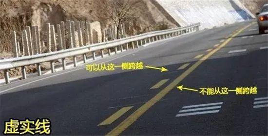 黃色虛實(shí)線實(shí)線側(cè)禁止車輛越線、虛線側(cè)準(zhǔn)許車輛臨時(shí)越線。