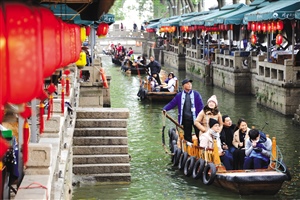 春節(jié)假期,我區(qū)的各個(gè)景區(qū)迎來旅游高峰,圖為游客們在同里古鎮(zhèn)度新春。(吳斌攝)