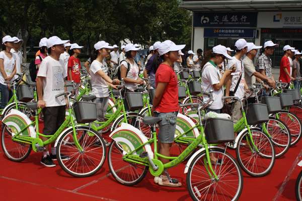 2010年8月30日,在蘇州金逸電影院廣場舉行了啟動儀式。廣場上集中停放著60輛嶄新的“綠色”公共自行車,在正式啟動之后,志愿者們做了首次體驗,紛紛騎上車,將車停放回各個停車點。首批投入200輛自行車,在主干道人民路沿線設11個站點。市民和游客分別繳納200元、300元押金即可辦理租車卡,在任一站點可刷卡租車,通借通還。市民卡第一小時免費,之后每小時1元。每輛車使用者都有2萬元的意外傷害保險。年內,蘇州還將建成第二批站點,形成覆蓋居民區、公交站、商業街、酒店賓館、旅游景點的公共自行車網絡。