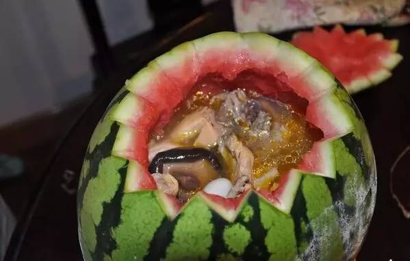 西瓜雞曾在蘇州當地持續風靡四五十年,因著只能在夏天吃,且必須當天烹煮當天吃,不能貯存又無法攜帶,因此知道的人還真不那么多。西瓜與母雞共蒸,瓜的清香滲入雞肉,雞肉又能保持原有的鮮嫩,考究點的店家還會在西瓜皮上雕圖刻畫,極富美味與觀賞性。
