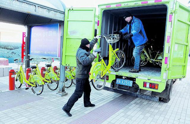 25日,黑河市區(qū)便民公共自行車運行系統(tǒng)全面關閉,進入冬季停運階段,工作人員將各網點自行車運回庫進行檢修。