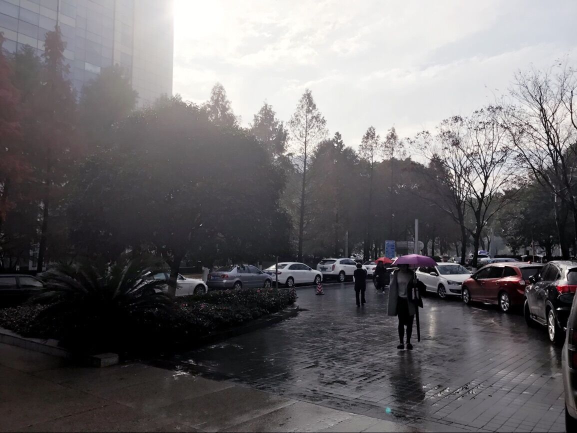 隨著白天的氣溫升高,霧氣逐漸消散。有心的市民發現,下午出現了一點陽光。然而奇妙的是,居然出現了一半晴天一半雨天的“太陽雨”現象。