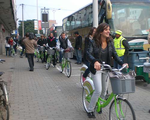 公共自行車在法國已運行多年,雖然法國游客對公共自行車早已熟悉,但他們對蘇州公共自行車依然非常感興趣,當他們知道旅行中有騎公共自行車游玩蘇州古城區這一活動時,他們非常熱切和開心的騎上公共自行車,在導游的帶領下,游玩蘇州古城區,雖然整個騎行時間只有1個多小時,但相信這種特殊的旅游方式會給他們留下深刻的印象,也讓蘇州這座千年古城更添活力。