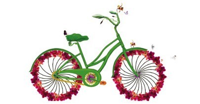 騎著綠色環保的自行車
