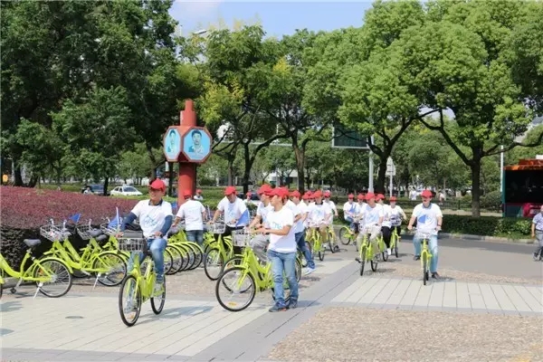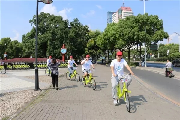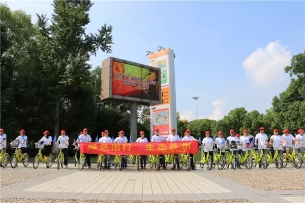 他們是蘇州市容市政系統青年志愿者們,今天是世界無車日,蘇州市市區道路停車管理所開展了公共自行車騎行宣傳活動,為宣傳綠色出行添磚加瓦。